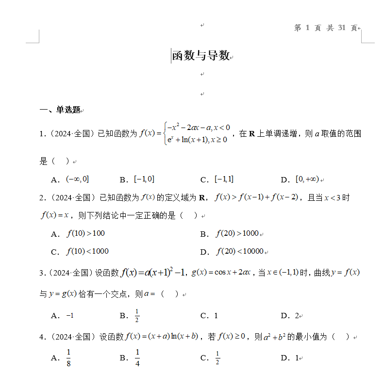 2026高考函数、导数考试热点